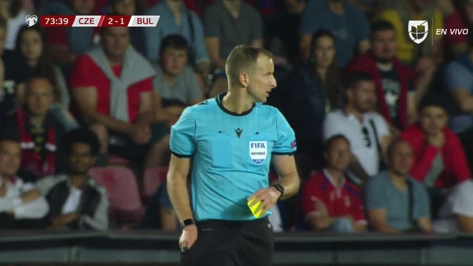 Tarjeta amarilla. El árbitro amonesta a Kristian Dimitrov de Bulgaria on June 7, 2019
