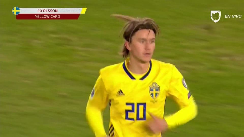 Tarjeta amarilla. El árbitro amonesta a Kristoffer Olsson de Sweden