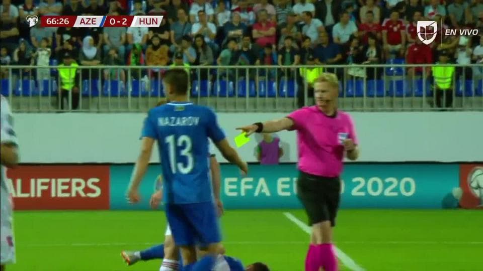 Tarjeta amarilla. El árbitro amonesta a László Kleinheisler de Hungary on June 8, 2019