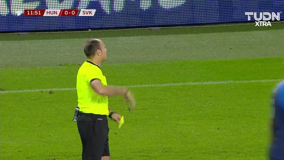 Tarjeta amarilla. El árbitro amonesta a Lubomir Satka de Slovakia