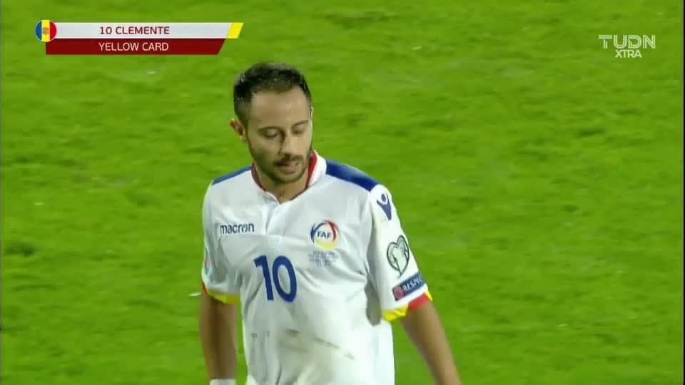 Tarjeta amarilla. El árbitro amonesta a Ludovic Clemente de Andorra on November 14, 2019