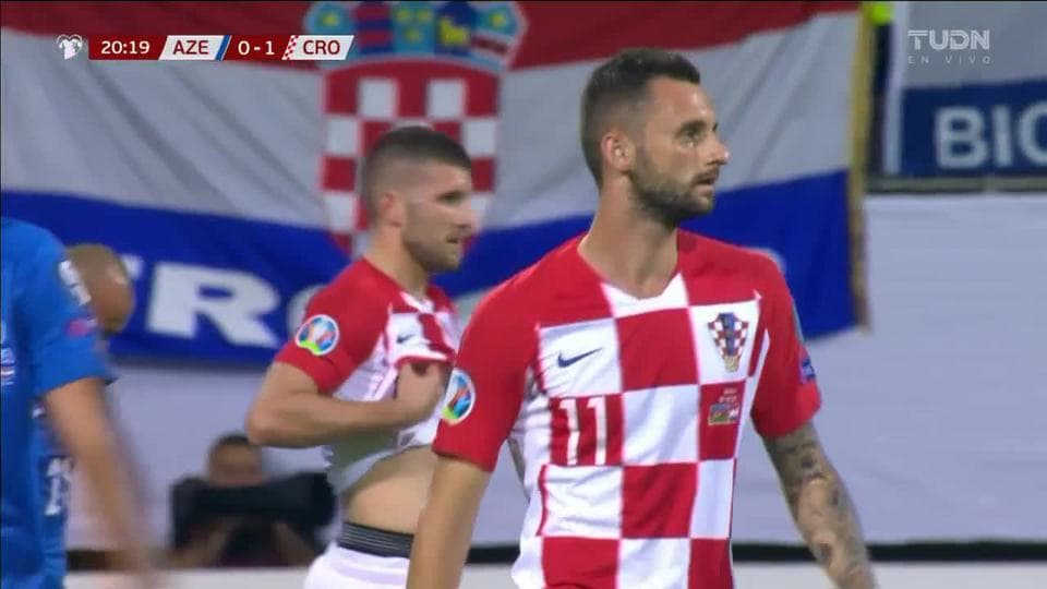 Tarjeta amarilla. El árbitro amonesta a Marcelo Brozovic de Croatia