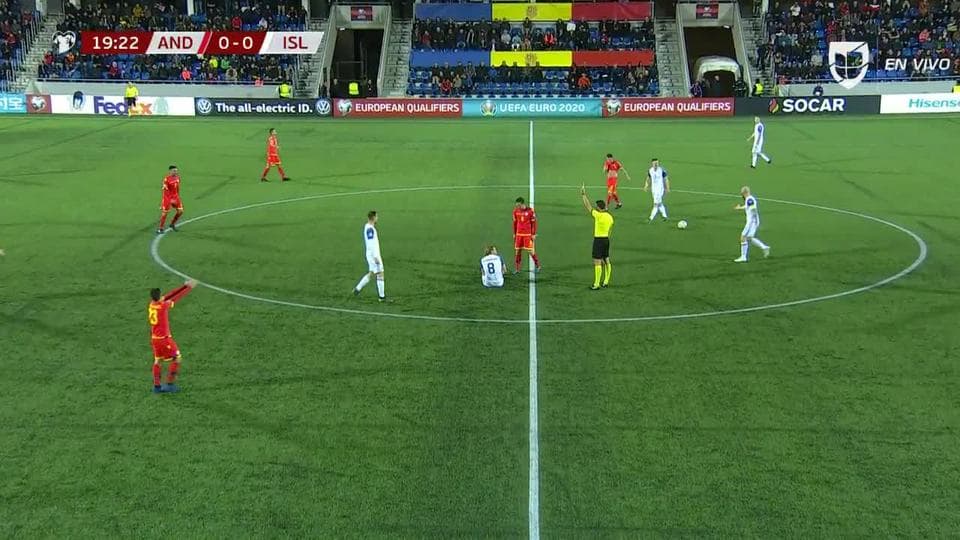 Tarjeta amarilla. El árbitro amonesta a Marcio Vieira de Andorra on March 22, 2019