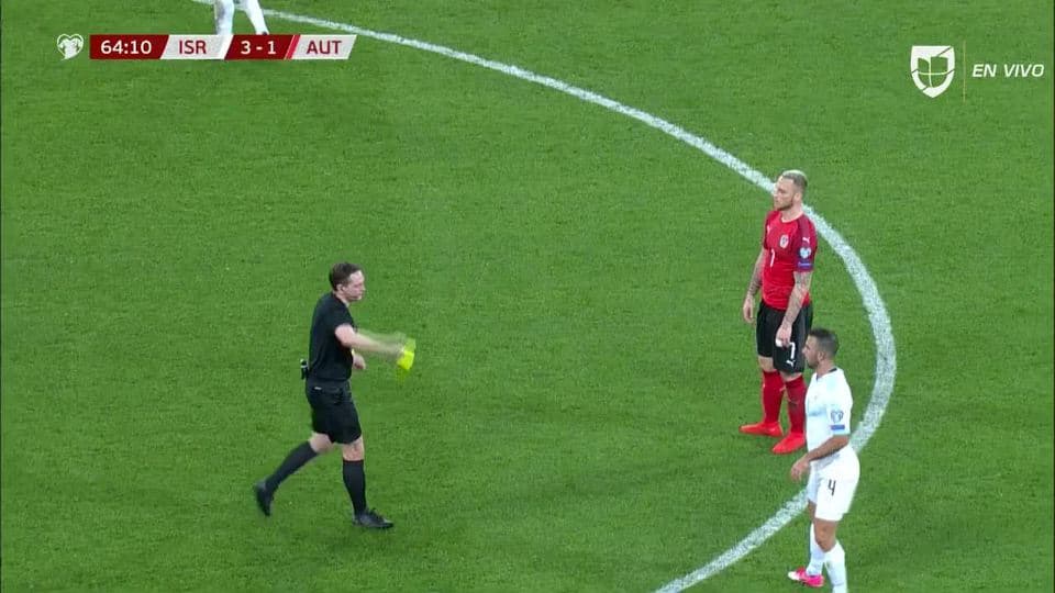 Tarjeta amarilla. El árbitro amonesta a Marko Arnautovic de Austria