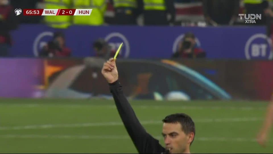 Tarjeta amarilla. El árbitro amonesta a Máté Pátkai de Hungary on November 19, 2019