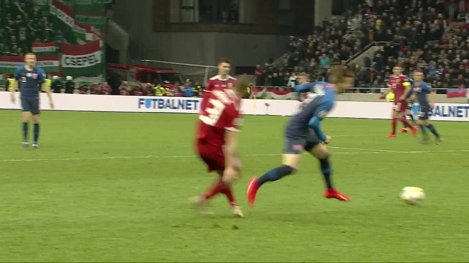 Tarjeta amarilla. El árbitro amonesta a Mihály Korhut de Hungary on March 21, 2019