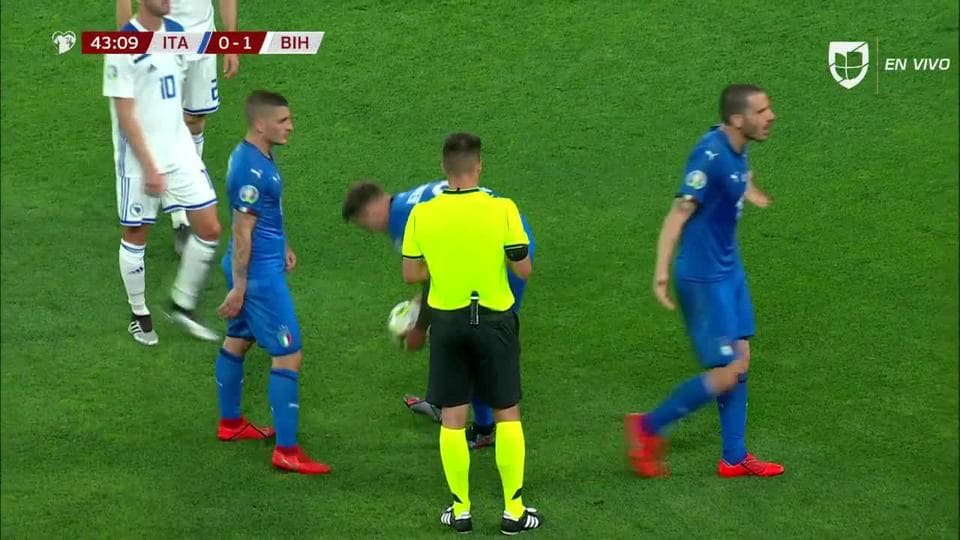 Tarjeta amarilla. El árbitro amonesta a Muhamed Besic de Bosnia and Herzegovina on June 11, 2019