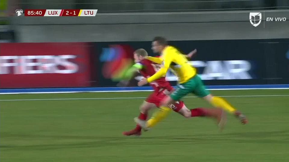 Tarjeta amarilla. El árbitro amonesta a Nerijus Valskis de Lithuania on March 22, 2019