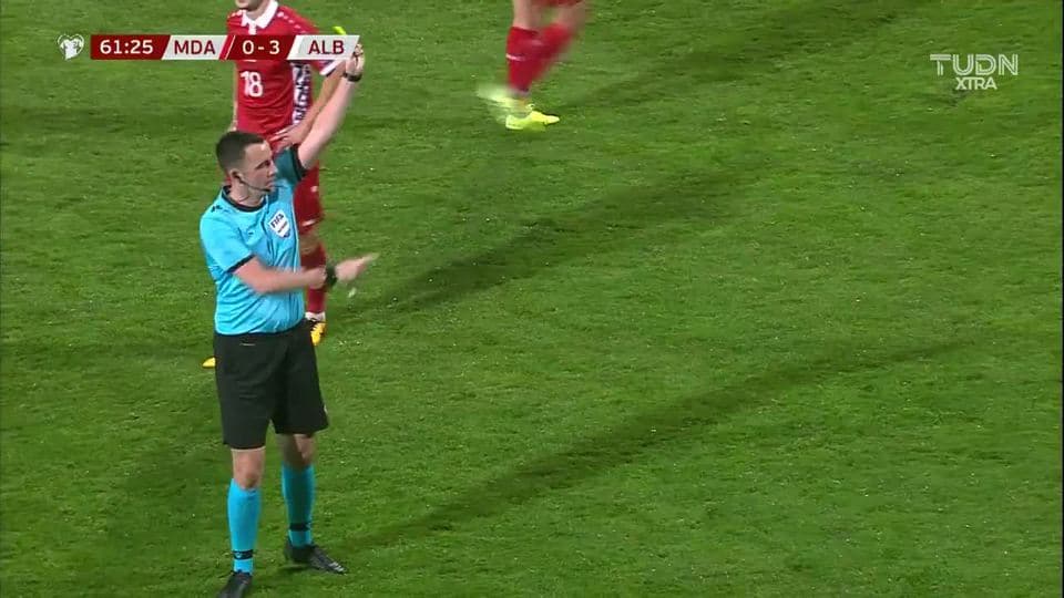 Tarjeta amarilla. El árbitro amonesta a Oleg Reabciuk de Moldova
