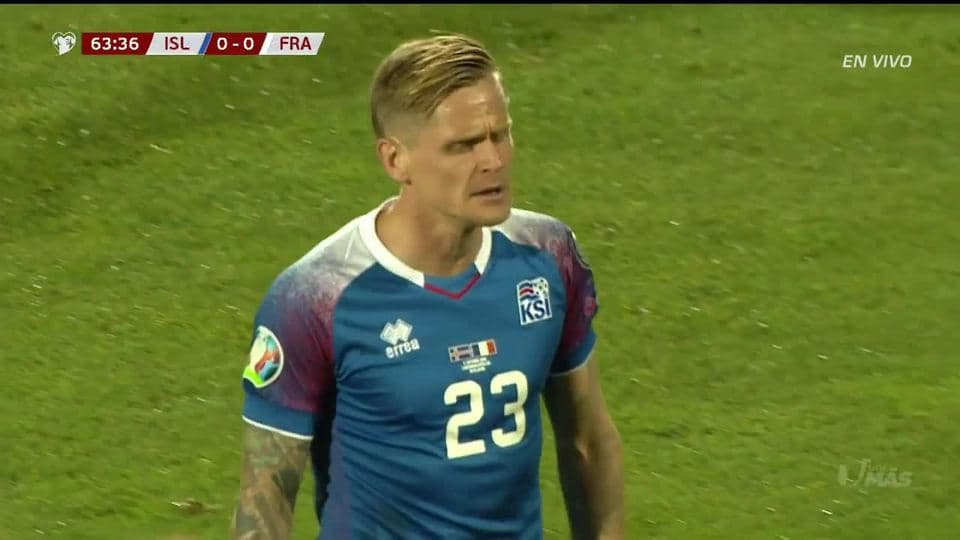 Tarjeta amarilla. El árbitro amonesta a ${PLAYER} de Iceland