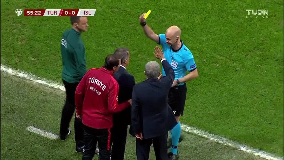Tarjeta amarilla. El árbitro amonesta a ${PLAYER} de Turkey