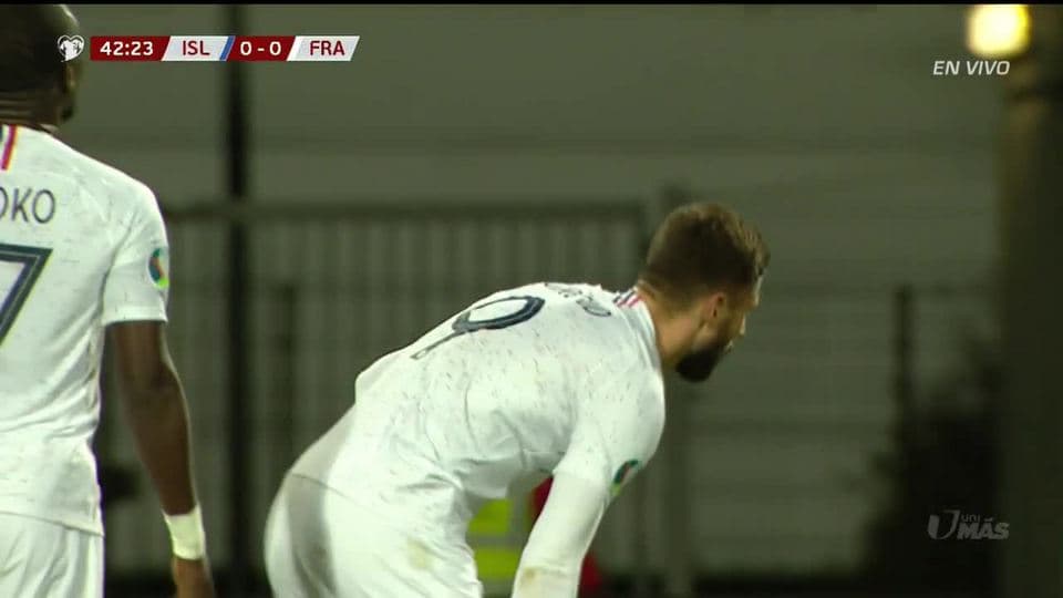 Tarjeta amarilla. El árbitro amonesta a Ragnar Sigurdsson de Iceland on October 11, 2019