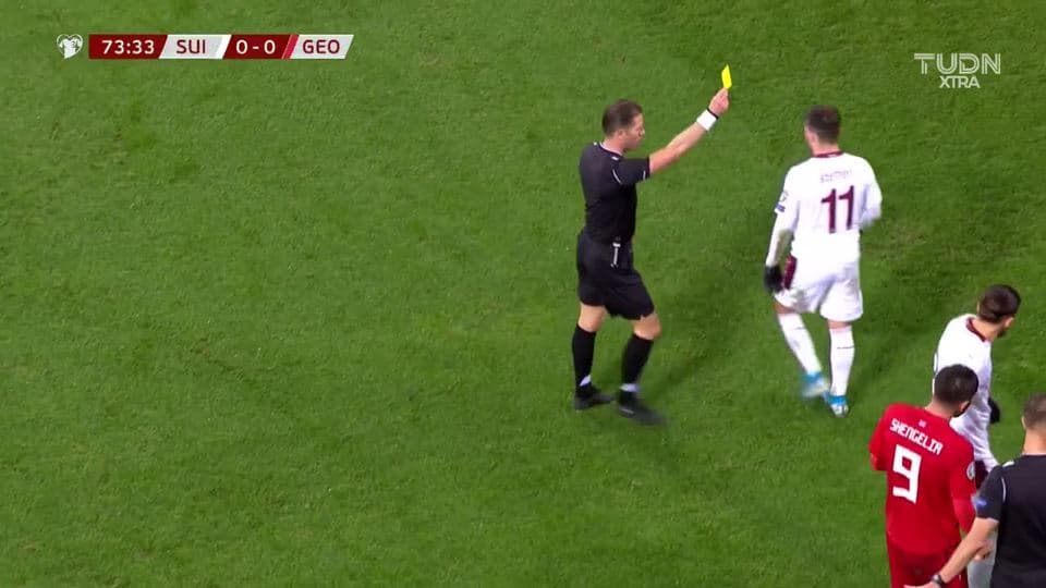 Tarjeta amarilla. El árbitro amonesta a Renato Steffen de Switzerland on November 15, 2019