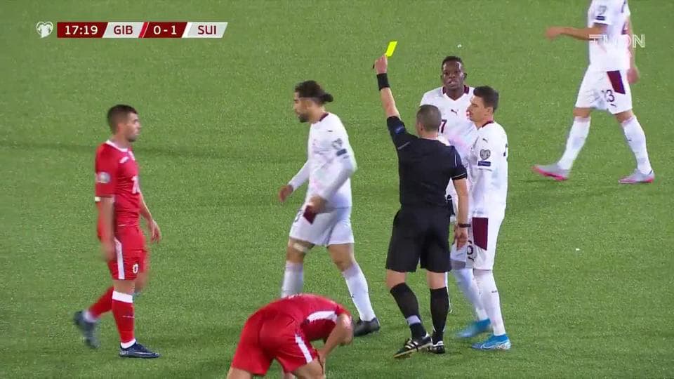 Tarjeta amarilla. El árbitro amonesta a Ricardo Rodríguez de Switzerland on November 18, 2019