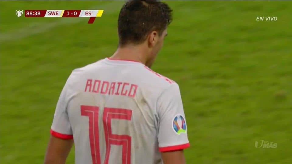 Tarjeta amarilla. El árbitro amonesta a Rodrigo de Spain