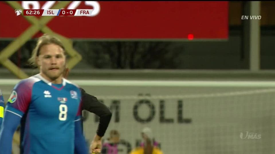 Tarjeta amarilla. El árbitro amonesta a Runar Mar Sigurjonsson de Iceland