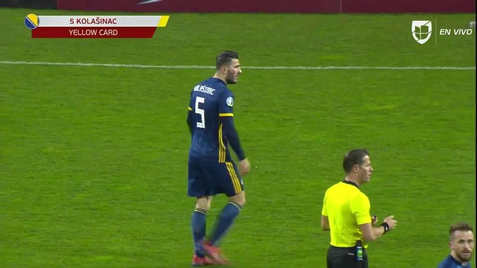 Tarjeta amarilla. El árbitro amonesta a Sead Kolasinac de Bosnia and Herzegovina