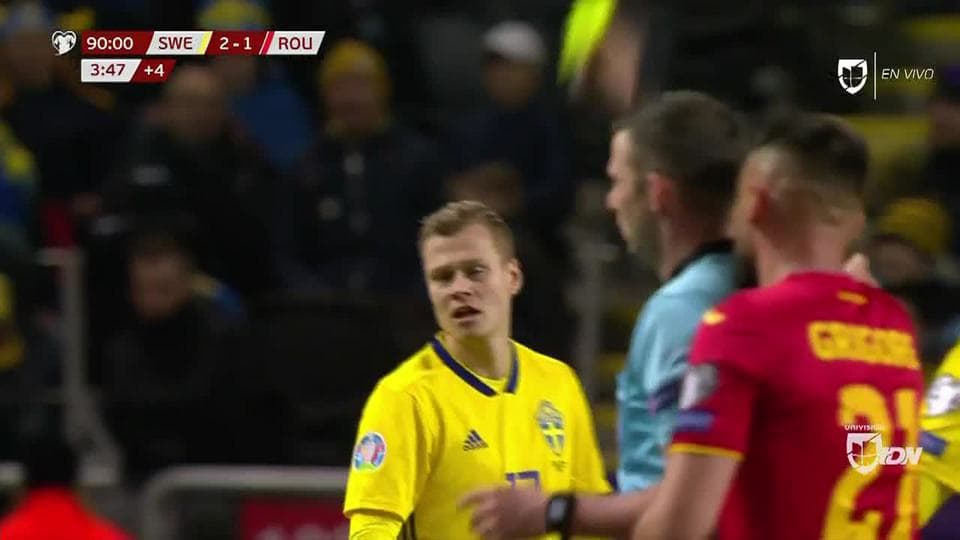 Tarjeta amarilla. El árbitro amonesta a Sebastian Larsson de Sweden on March 23, 2019