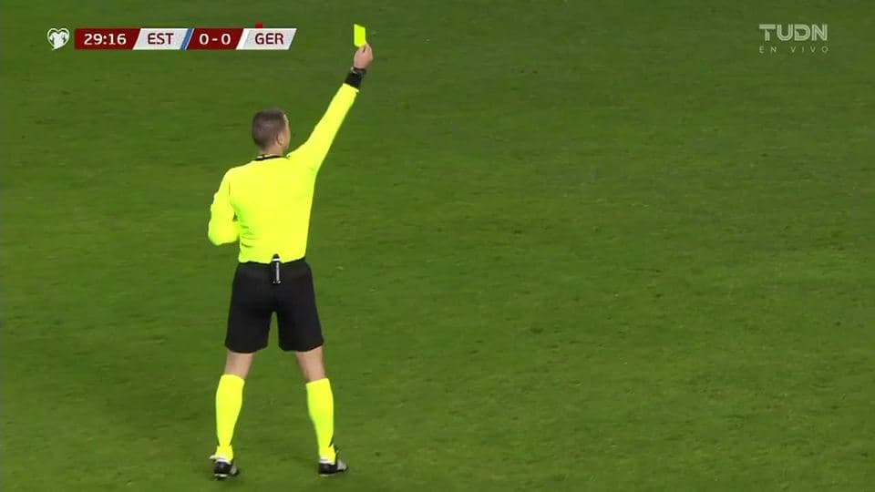 Tarjeta amarilla. El árbitro amonesta a Sergei Lepmets de Estonia on October 13, 2019