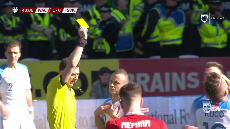 Tarjeta amarilla. El árbitro amonesta a Stanislav Lobotka de Slovakia