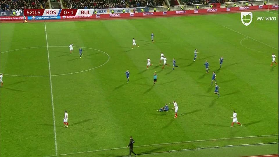 Tarjeta amarilla. El árbitro amonesta a Strahil Popov de Bulgaria on March 25, 2019
