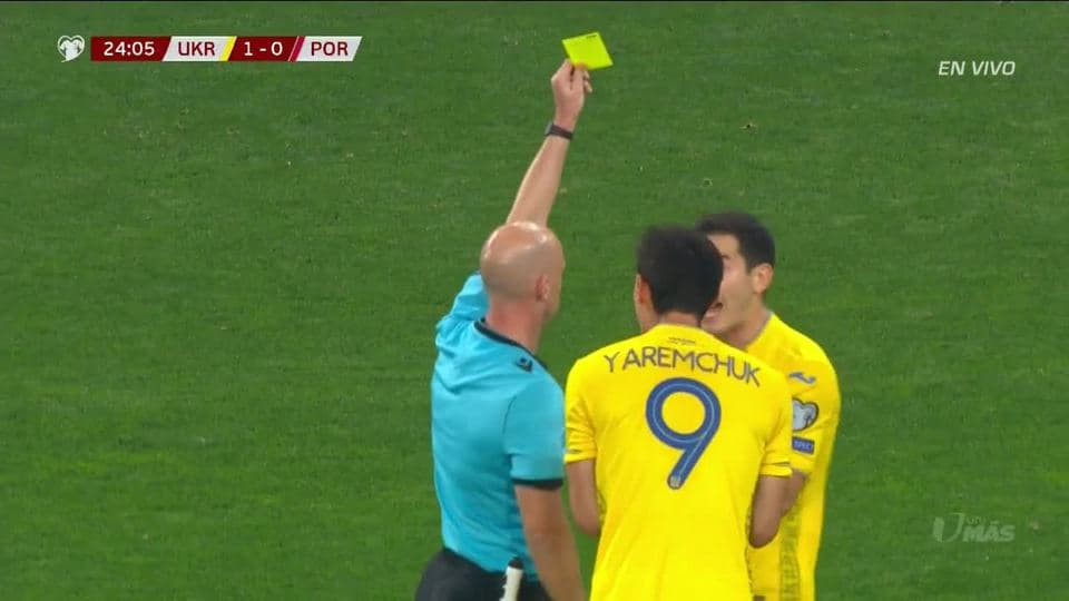 Tarjeta amarilla. El árbitro amonesta a Taras Stepanenko de Ukraine