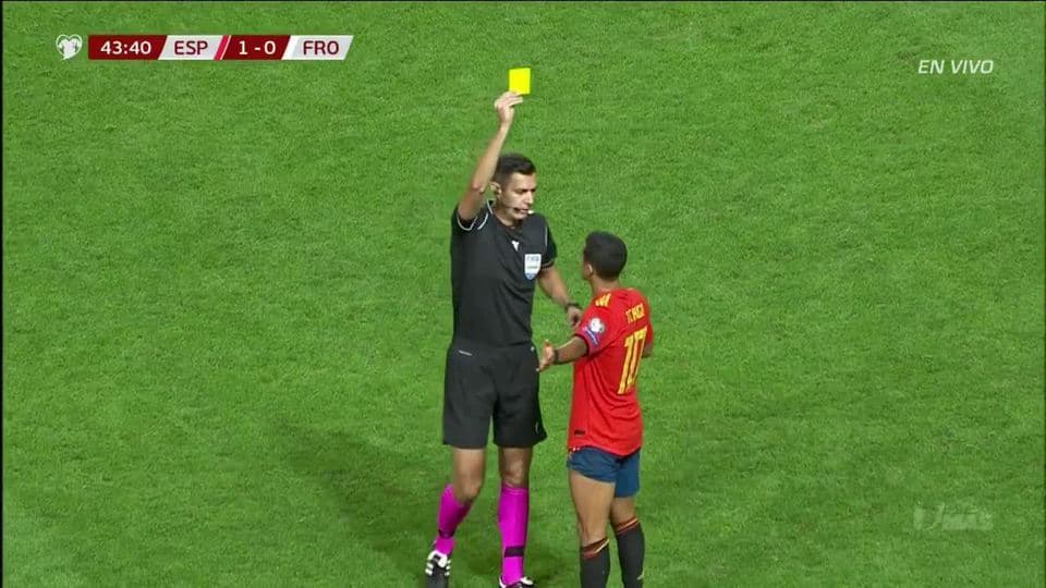 Tarjeta amarilla. El árbitro amonesta a Thiago Alcántara de Spain