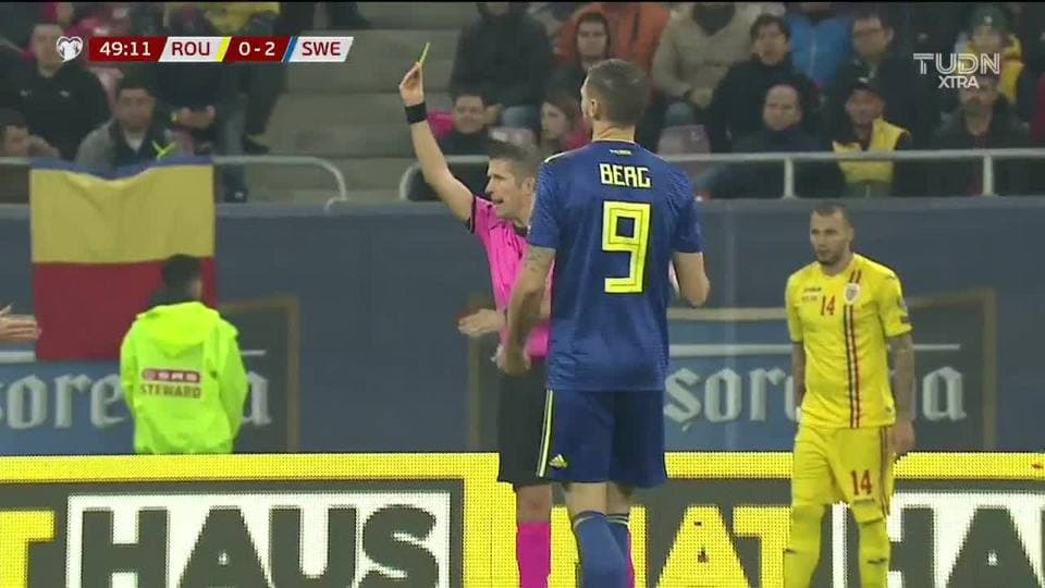 Tarjeta amarilla. El árbitro amonesta a Victor Lindelöf de Sweden
