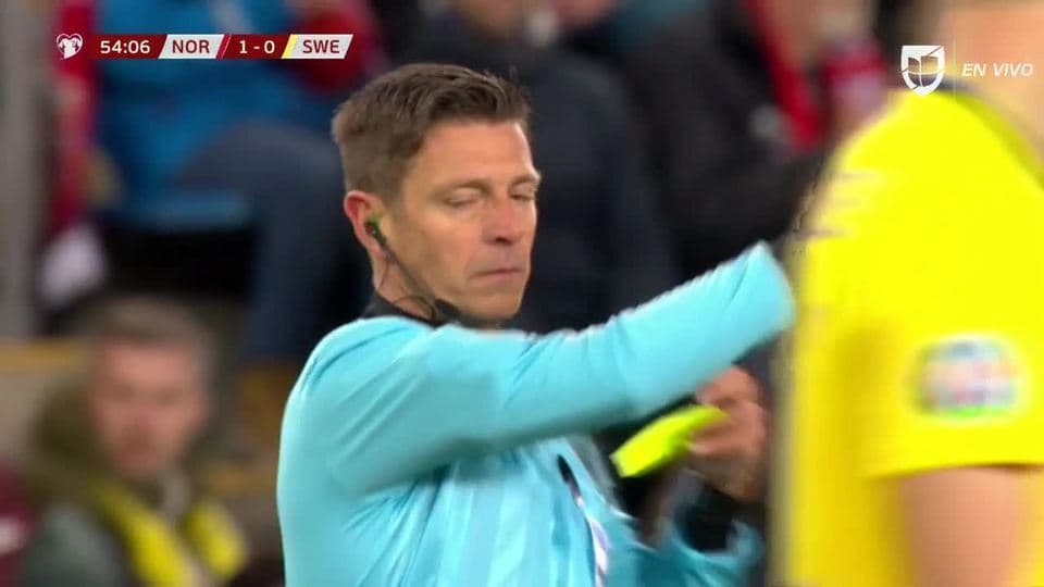 Tarjeta amarilla. El árbitro amonesta a Viktor Claesson de Sweden