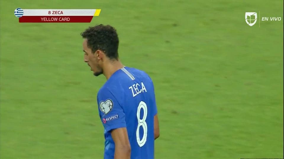 Tarjeta amarilla. El árbitro amonesta a Zeca de Greece on June 11, 2019