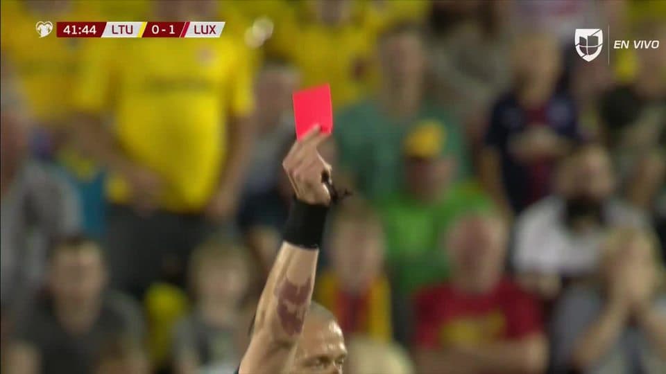 ¡Tarjeta Roja! Saulius Mikoliunas recibe la segunda amarilla y se va del juego