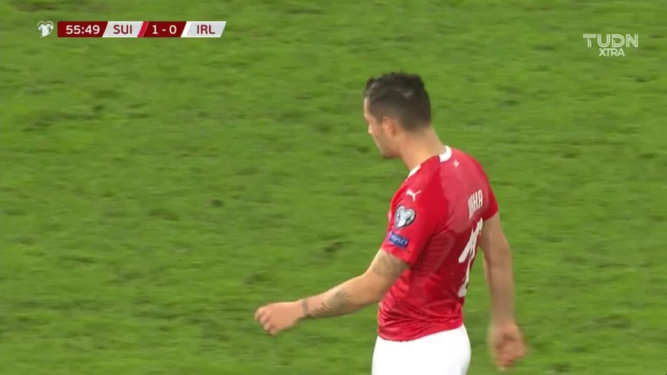 Tiro desviado de Granit Xhaka on October 15, 2019