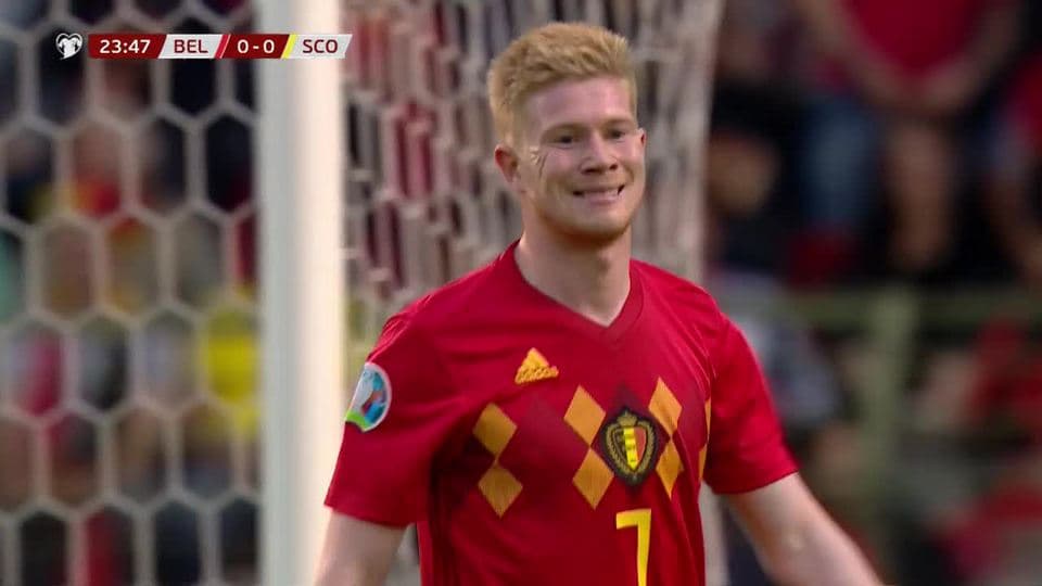 Tiro desviado de Kevin De Bruyne on June 11, 2019