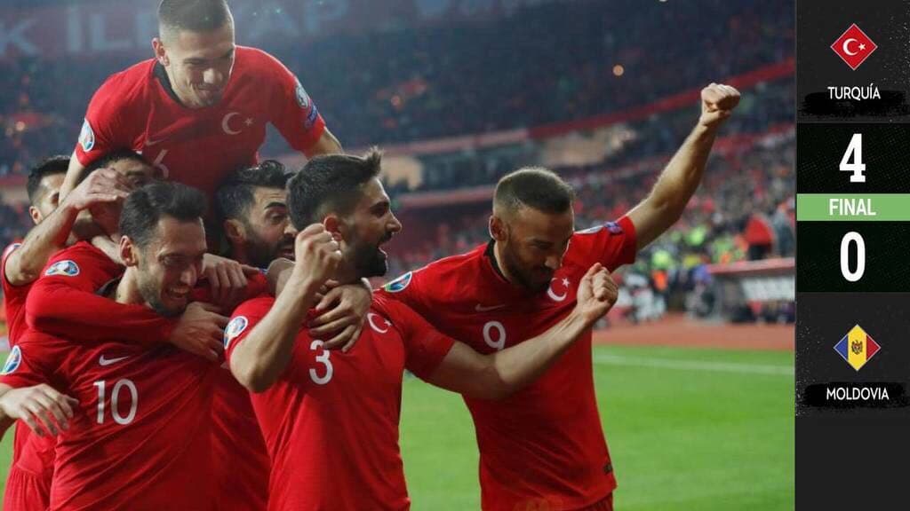 Turquía goleó 4-0 a Moldavia y se mantuvo en la parte alta del grupo H de las Eliminatorias a la Eurocopa 2020, gracias a los goles de Cenk Tosun, en dos ocasiones, Hasan Ali Kaldirim y Kaan Ayhan.