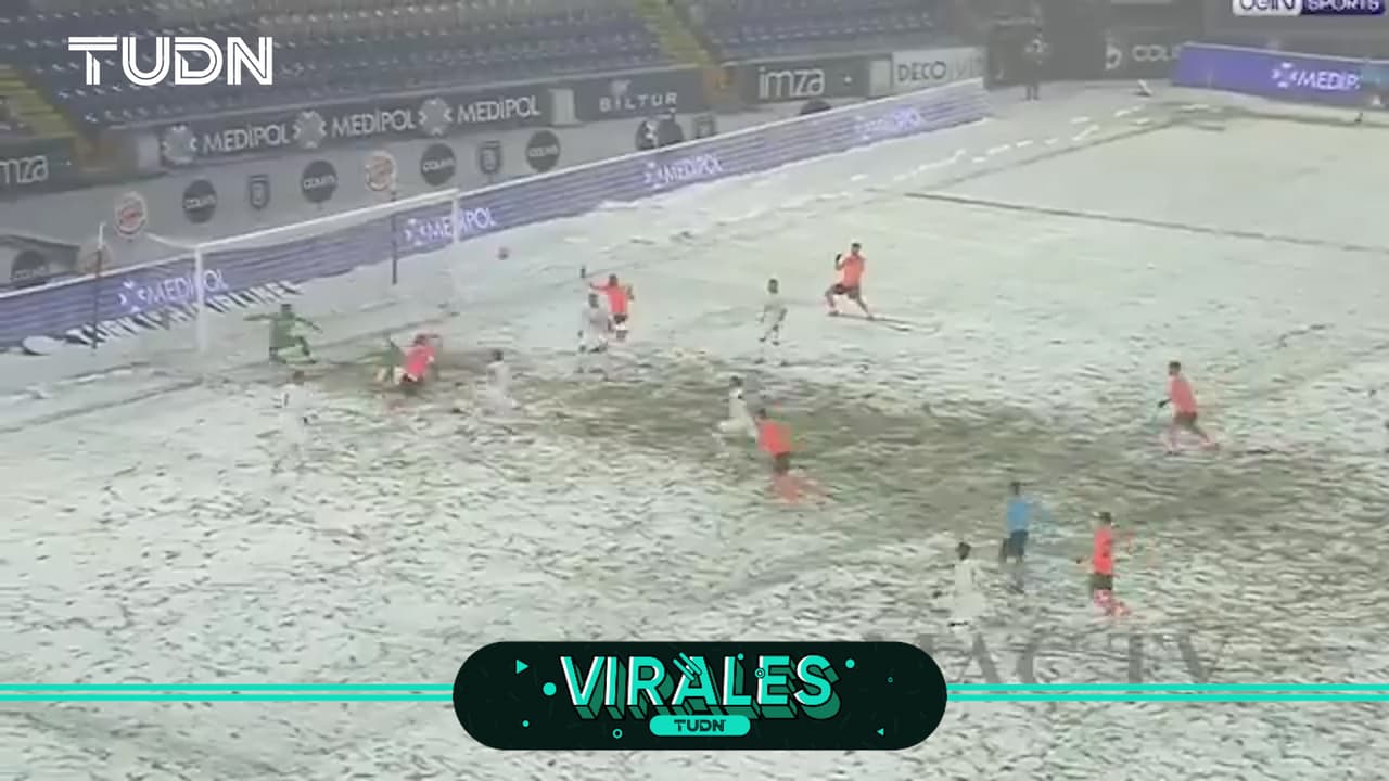 El Sivasspor jugó de blanco y con nieve, lo que dificultó la visibilidad para el equipo rival.
