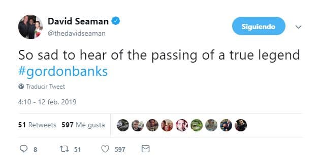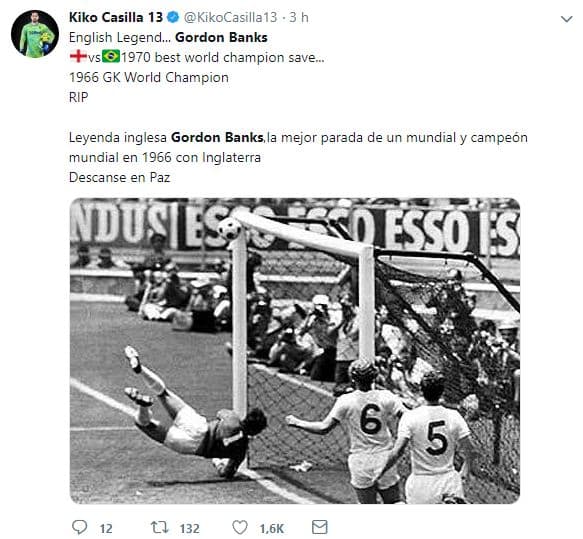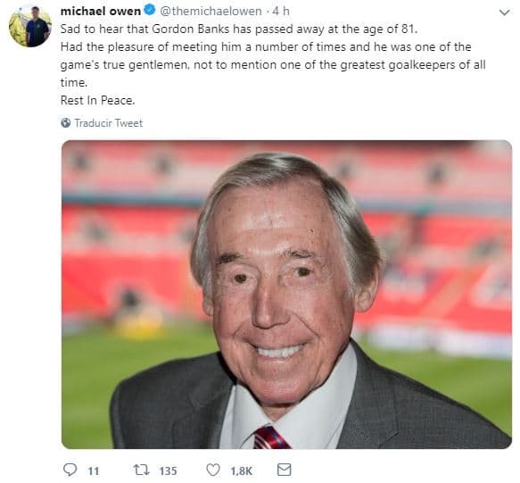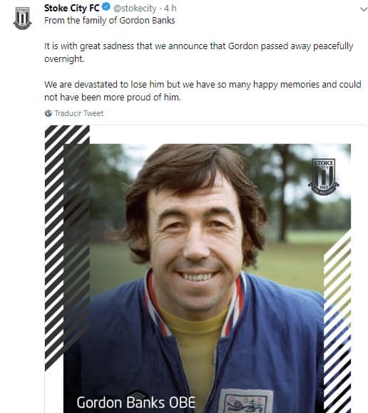 Figuras del fútbol despiden a Gordon Banks desde sus redes sociales