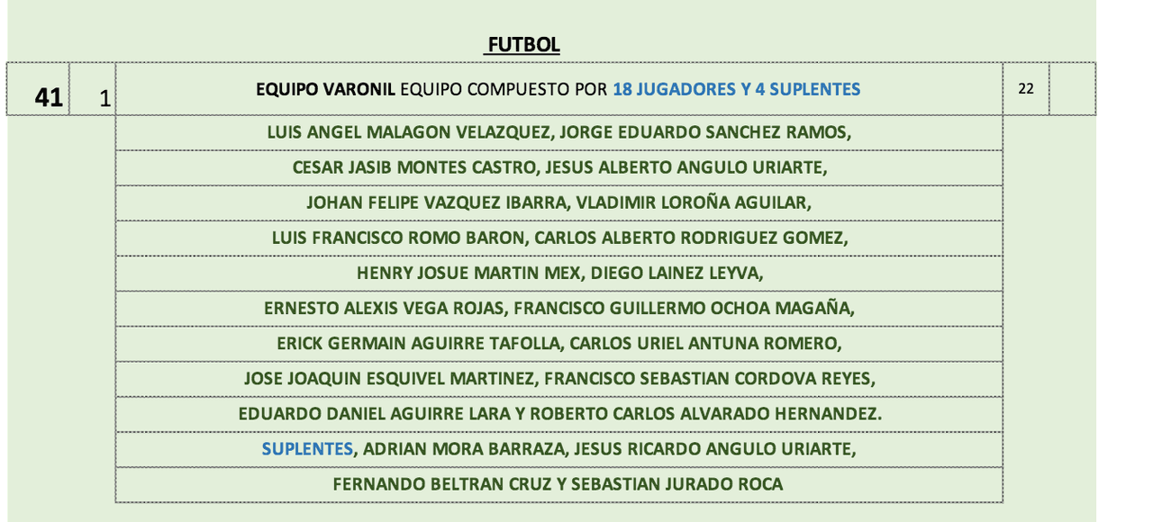 * SUPLENTES: Sebastián Jurado (Cruz Azul), Adrián Mora (Juárez), Jesús Ricardo Angulo (Chivas) y Fernando Beltrán (Chivas).