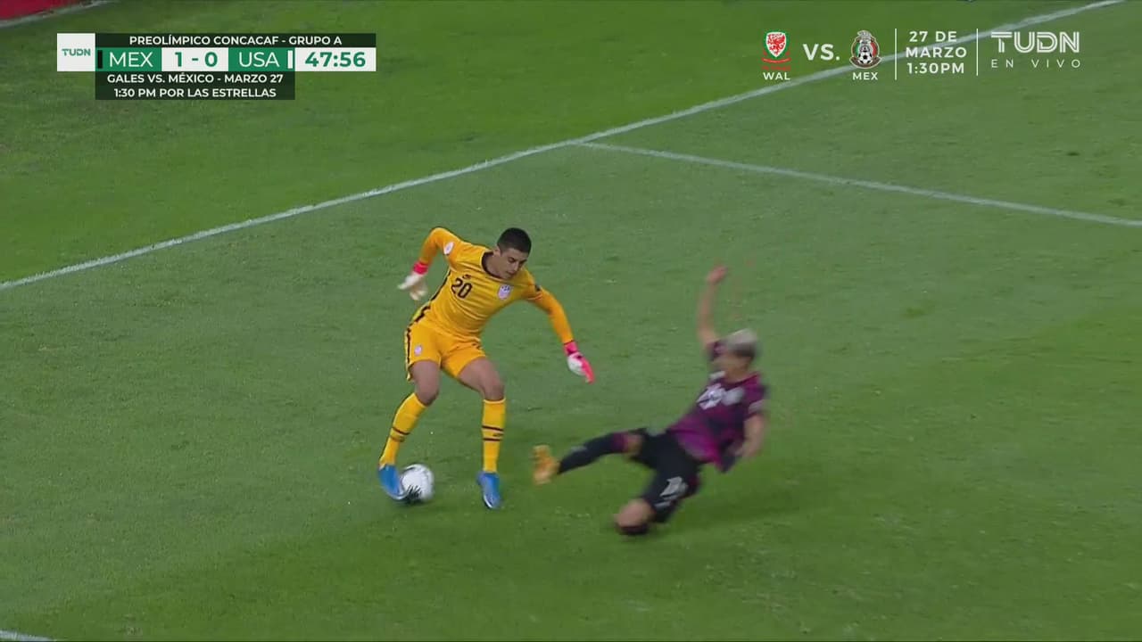 David Ochoa amagó con despejar el esférico, pero aprovechó para driblar a Uriel al 48’.