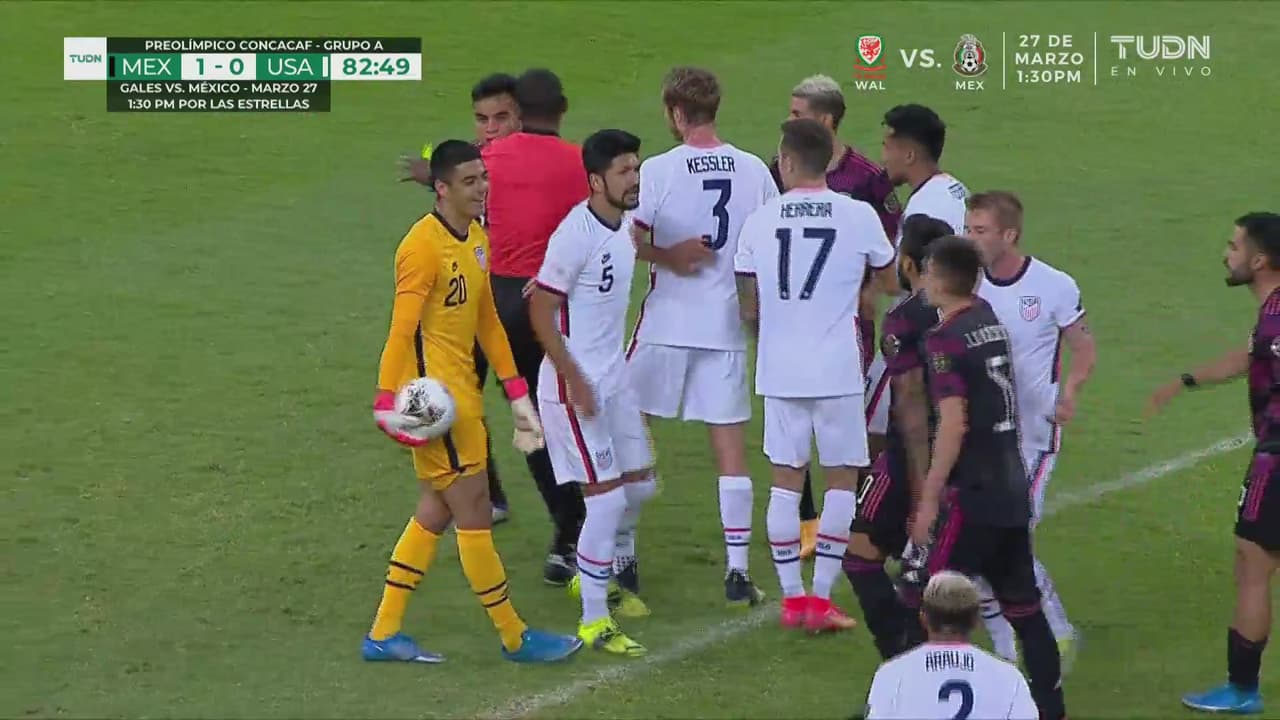 El portero de Estados Unidos empujó al defensa de México y se le fueron encima al 83’.