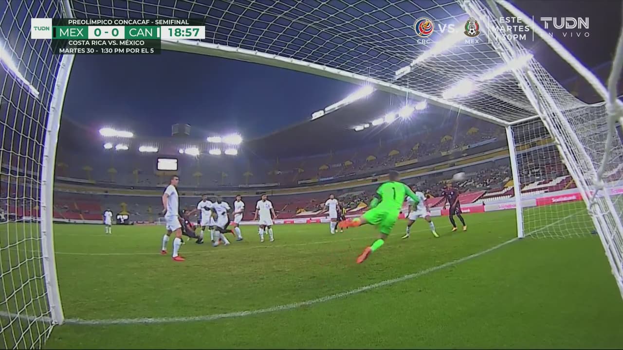 ¡Tenía todo para marcar! Remate de Esquivel a lado del arco de Canadá
