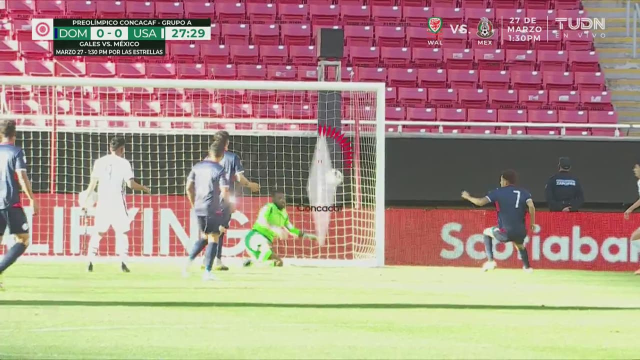 Cabezazo del delantero de Estados Unidos que tapó muy bien el arquero Johan al 27’.