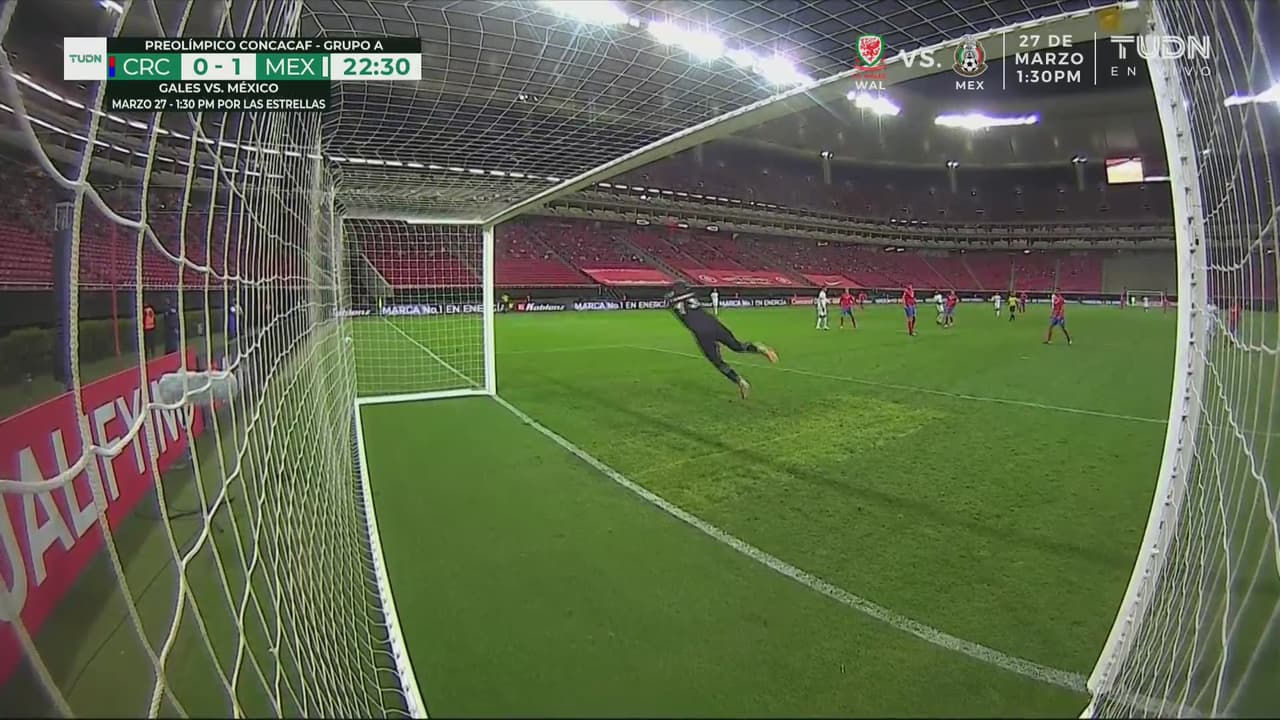El ariete del Tri disparó desde las afueras del área, pero el portero de Costa Rica alejó al 21’.