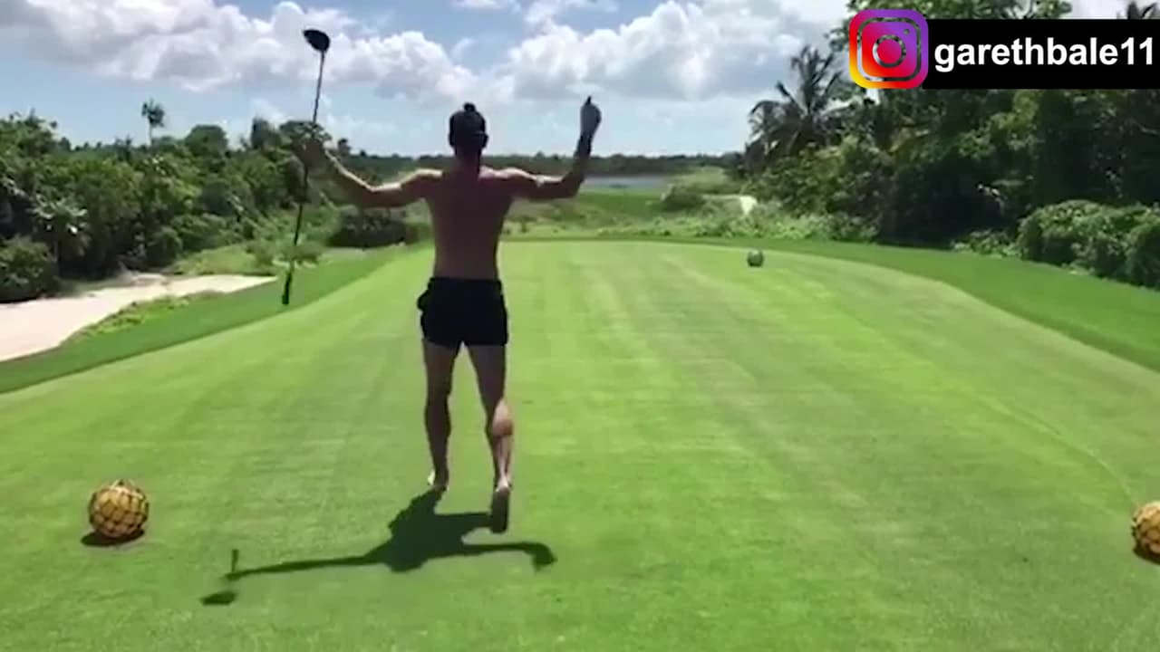 El jugador galés del Real Madrid cambió durante las vacaciones los tacos por los palos de golf. Mira acá su peculiar swing. ¿Habrá llegado su tiro al Green?