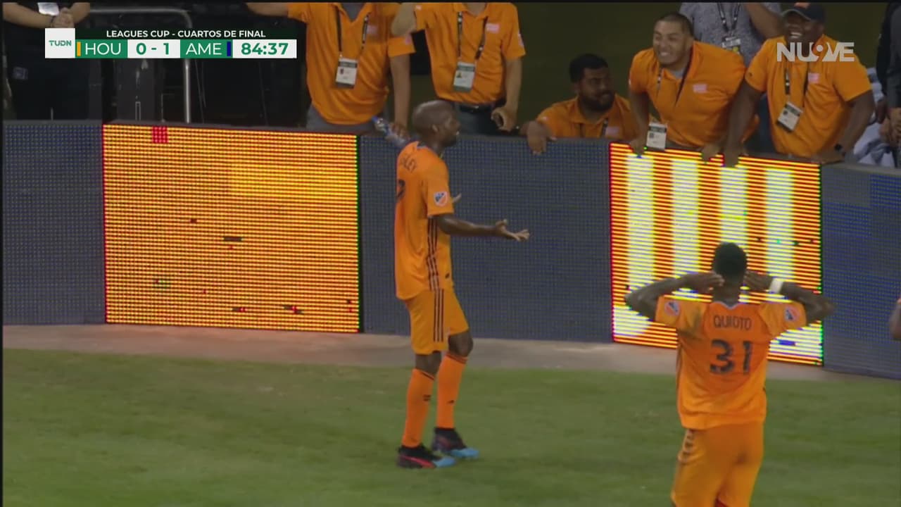 El América sufrió poco más de lo pensado ante el Houston Dynamo a quien eliminó en tanda de tiros penales 6-5, tras empatar 1-1 en el tiempo regular de la Leagues Cup. Las Águilas pasaron a Semifinales del torneo en la noche del debut de Giovani dos Santos.