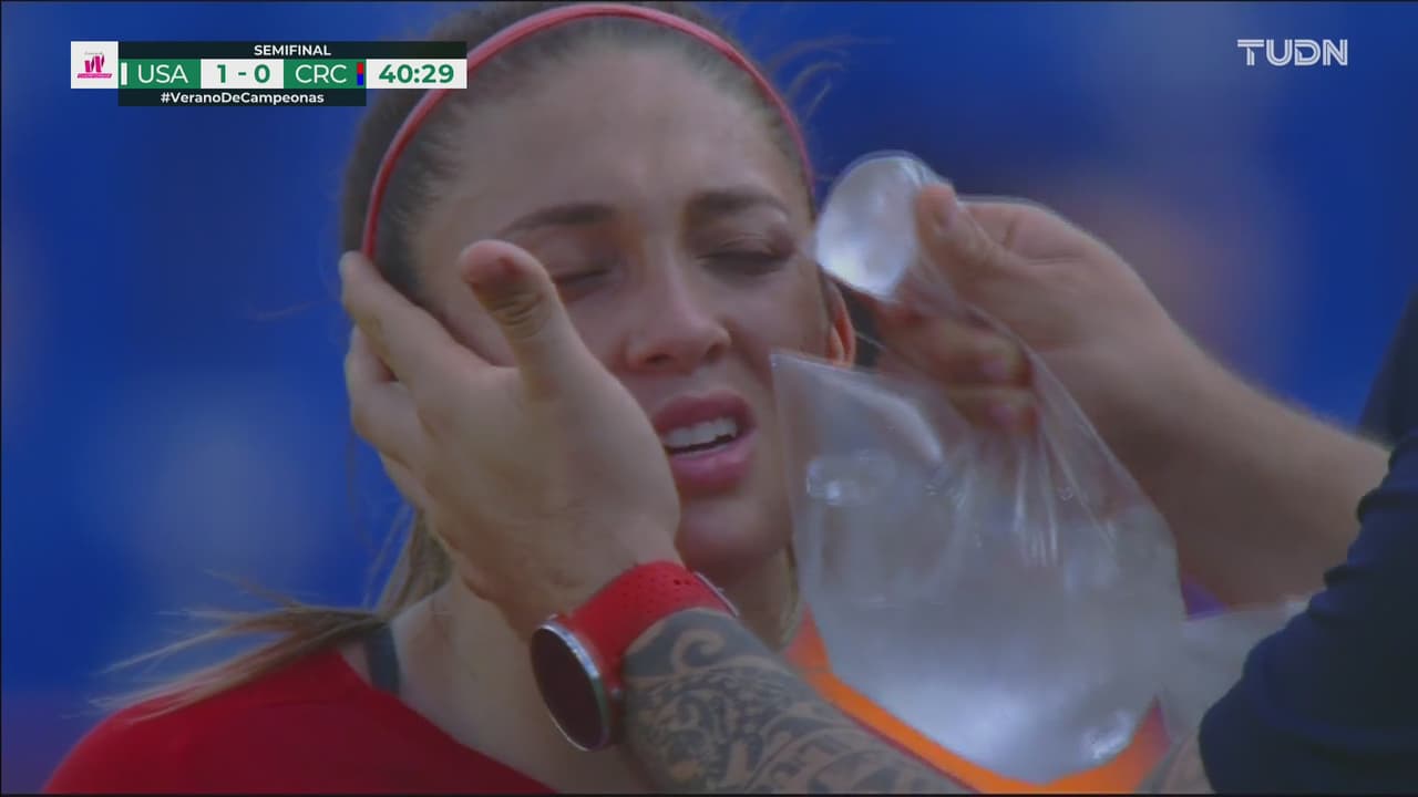 La defensora de Costa Rica se estrelló en el aire con Lindsey Horan y se llevó la peor parte al 39’.