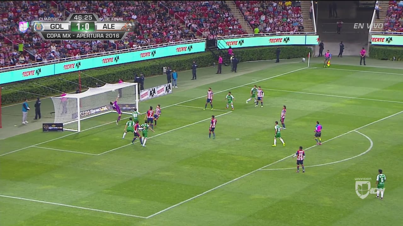 Carlos Nava mete un remate que el portero de Guadalajara rechaza. Cerca Alebrijes del empate.