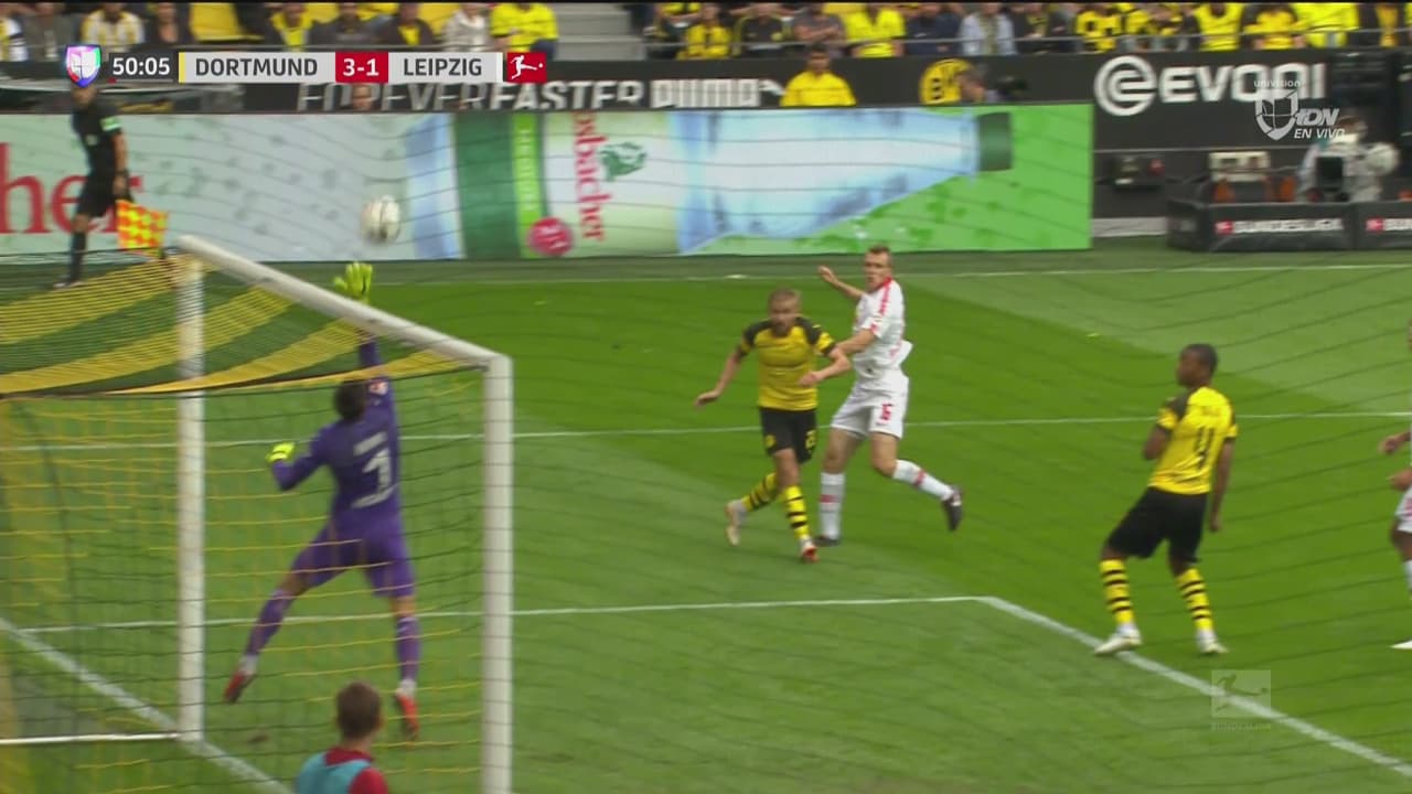 El arquero del Dortmund evitó que el Leipzig se acercara en el marcador a través de un salvador manotazo.