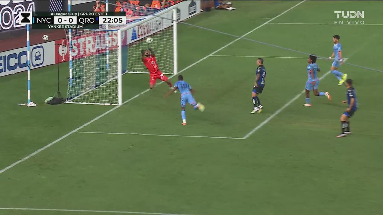 El New York City FC volvió a llegar con peligro, pero esta vez el arquero de Querétaro sacó el balón.