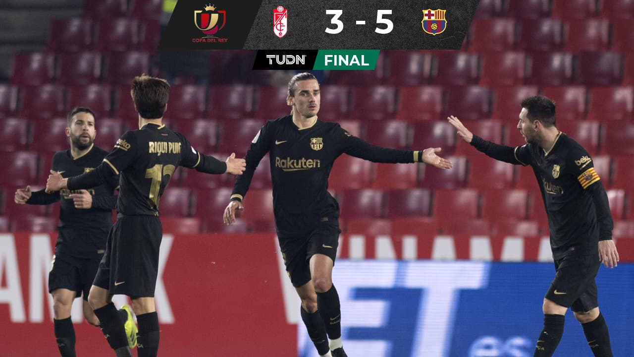 Barcelona estuvo en la lona, al borde de la eliminación, pero a dos minutos del final logró marcar dos goles que permitieron enviar el juego ante Granada a tiempos extra y ahí marcar tres goles más para avanzar a Semifinales de la Copa del Rey.