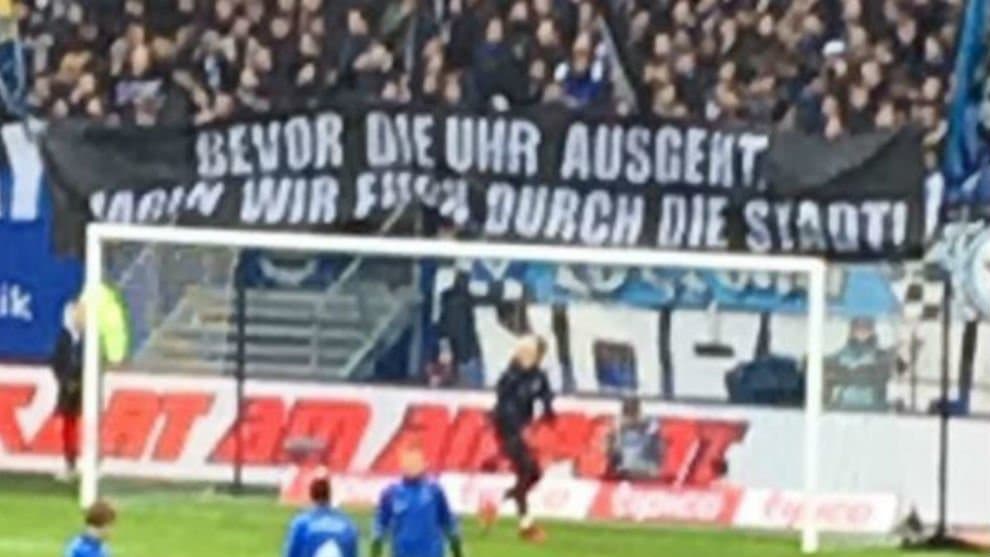 En esa ocasión la manta contenía el mensaje: "Antes de que se apague el reloj los cazaremos en la ciudad"; en contexto a esto, el Hamburgo cuenta con un reloj en la cancha que va sumando minutos, horas, días, semanas, meses y años que el club ha permanecido en primera división.